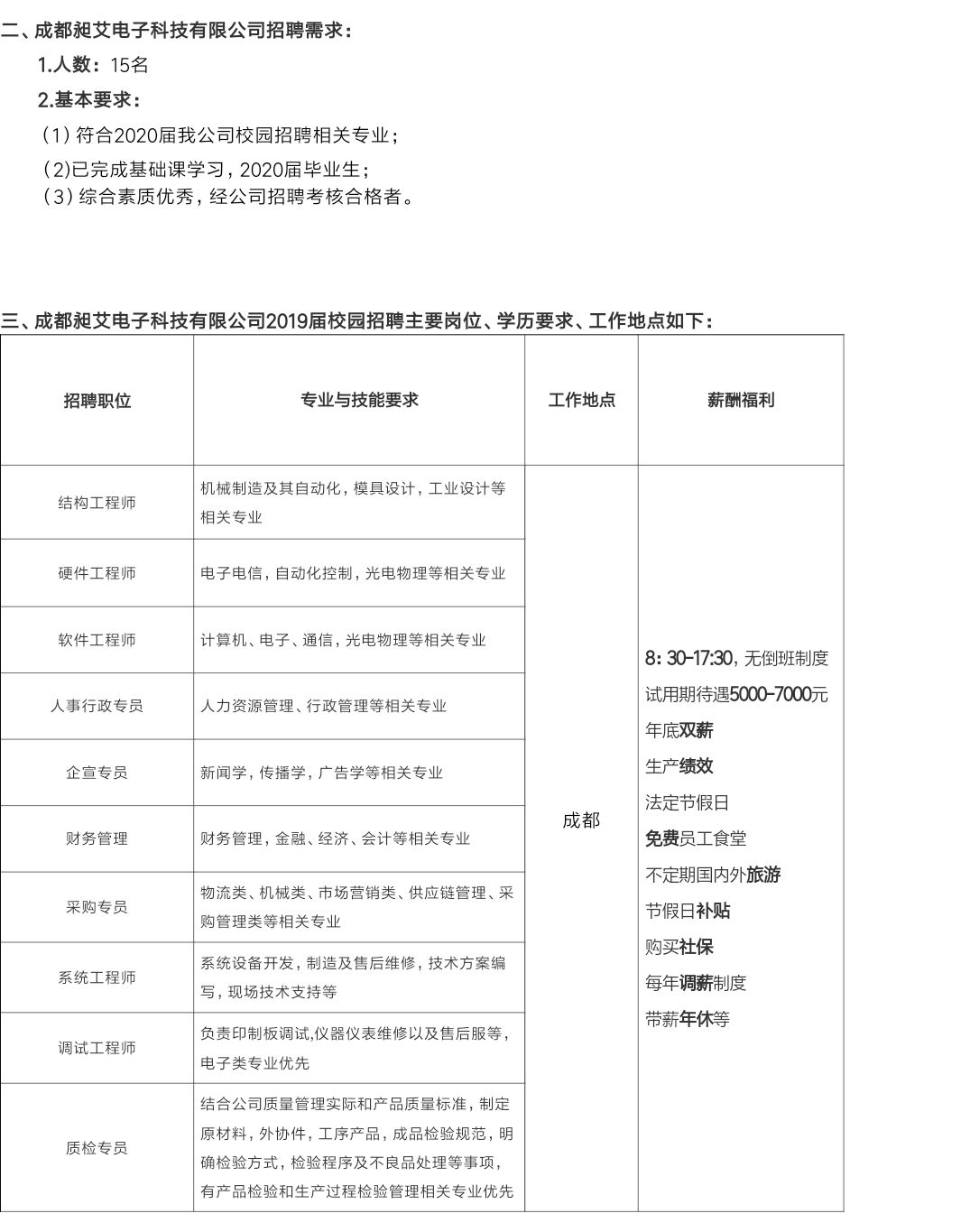 2、在电子产业中的地位:随着信息技术的不断发展,电子产业在全球范围内呈现出蓬勃生机,成都电子凭借强大的技术实力和良好的市场表现,在电子产业中占据了重要地位,此次招聘活动进一步提升了电子厂在业界的知名度和影响力,为其在电子产业的发展壮大奠定了坚实基础。
